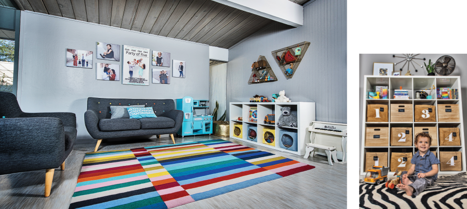 The multi-purpose room off the kitchen is currently set up as a play space for the kids. A professional organizer, Amanda maximizes storage options in the home.
