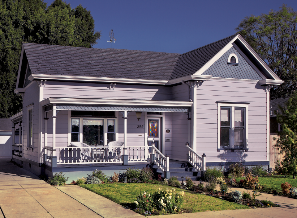 “The home was a much brighter purple before, but we toned it down,” Kris says. “The porch was green and now it’s blue.”